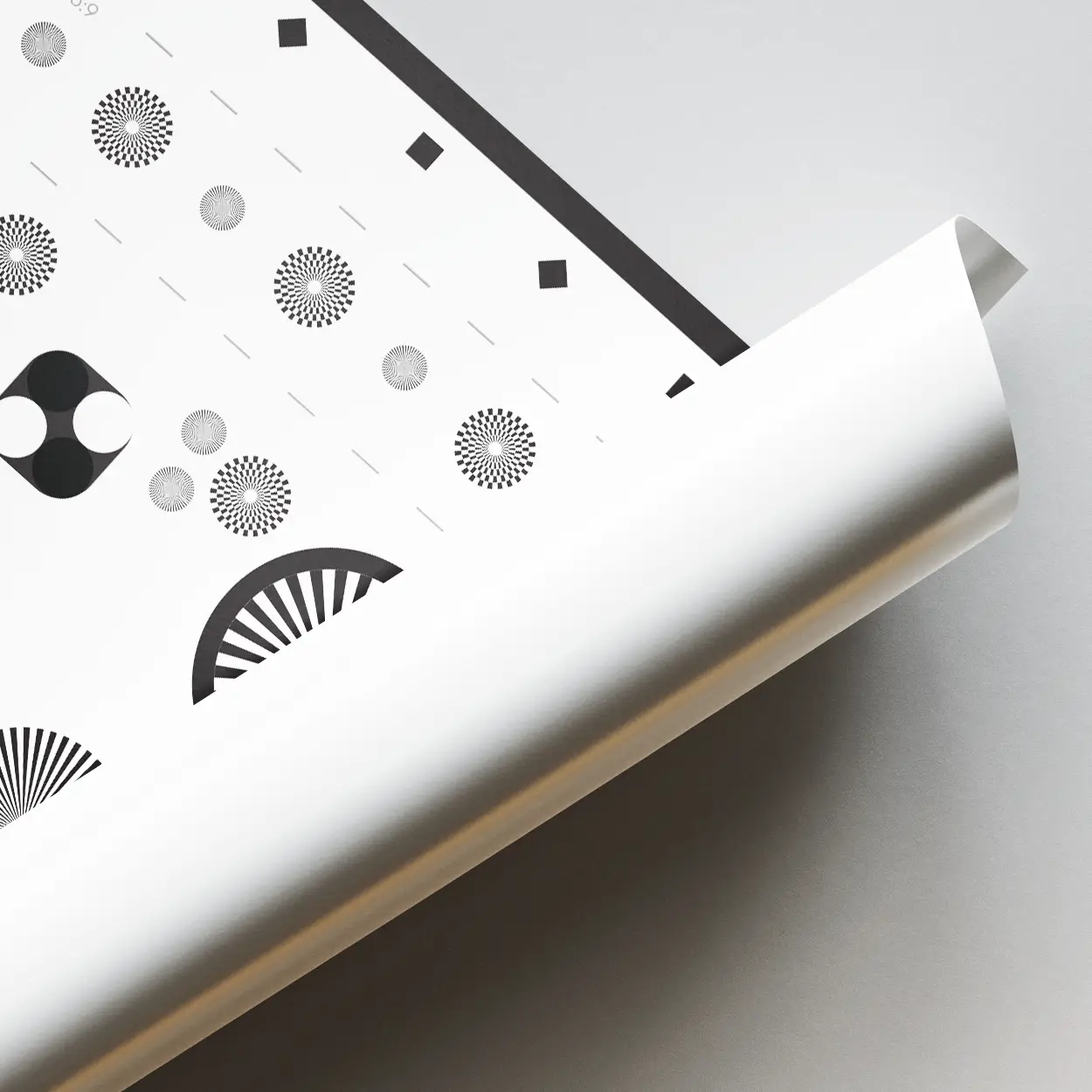 My print shop here in Haarlem prints it on a 5mm thick board called Vorex. It's super handy — you can just stick it to the wall with double-sided tape or a screw. No frame needed.